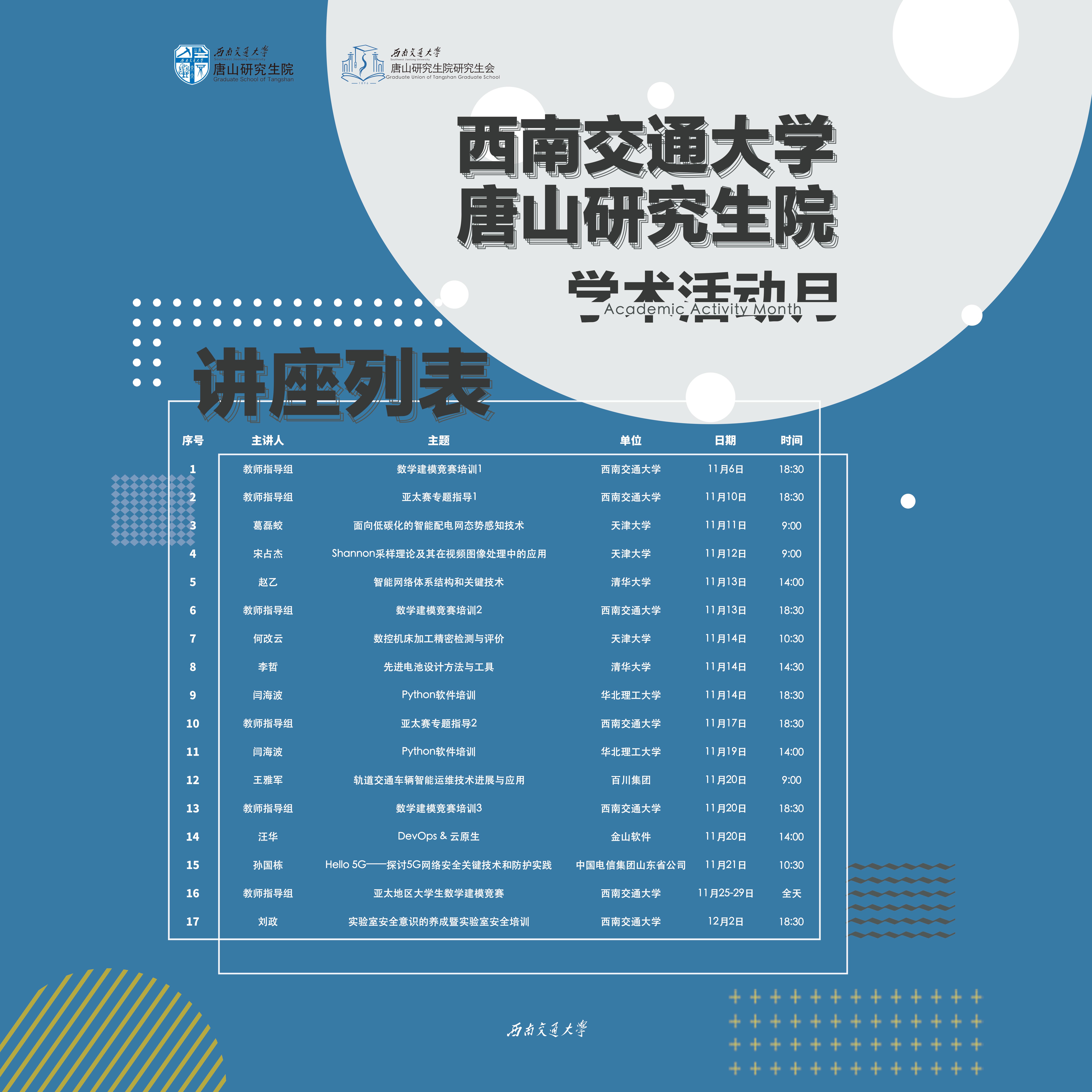 唐山研究生院2021年学术活动月安排表