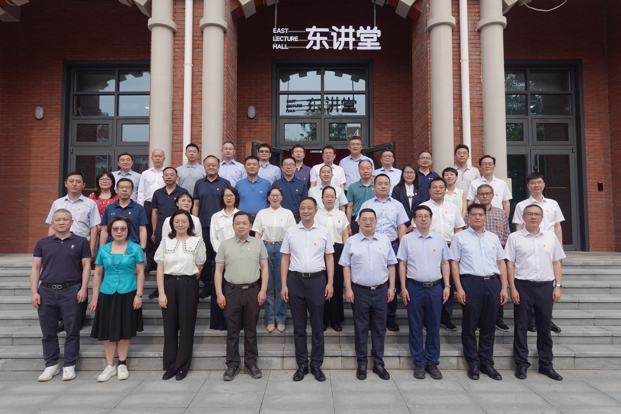 党委书记刘伟带领学员们参观园区内复建的老唐山交大东楼、西楼、东讲堂、西讲堂、南讲堂、老校门等建筑。在新落成的校史馆中,学员们重温了学校的“因路而生、教育救国”,“红色基因、工程报国”,“严谨治学、人才兴国”,“不忘初心、交通强国”的发展历程。