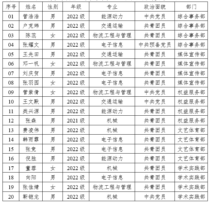 为进一步加强91大神 研究生会组织队伍建设,更好地服务于91大神 全体师生,91大神 团委、研究生会根据《91大神 研究生会章程》有关规定,本着公平、公正、公开的原则,经个人书面申请、综合面试考核等环节,最终确定2022年91大神 研究生会干事名单,现予以公示: