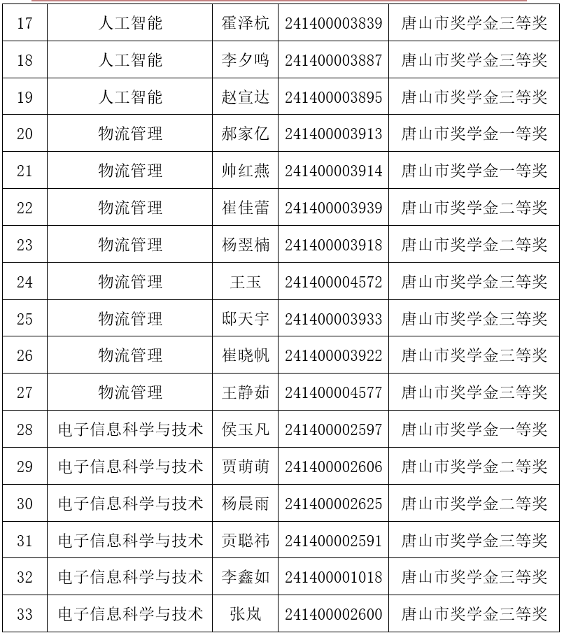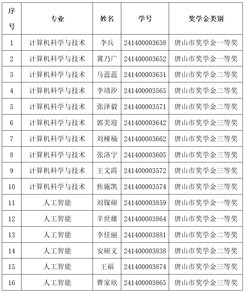 91大神 2025年唐山市奖学金(本科生)获奖名单公示