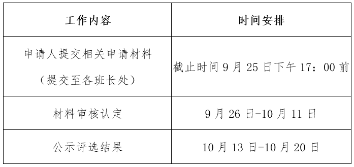 2、请按照时间节点提交申请材料至各班长处,过期取消申请资格。