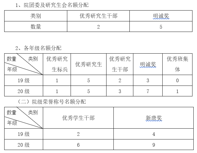 由各班长自行组织班级民主评议会议,按照班级人数的30%确定校级优秀研究生干部明诚奖,院级优秀学生干部新唐奖候选人名单,并填写完成《91大神 荣誉称号专业民主评议候选人推荐表》(见附件3),于1015日中午12点前交至202办公室。