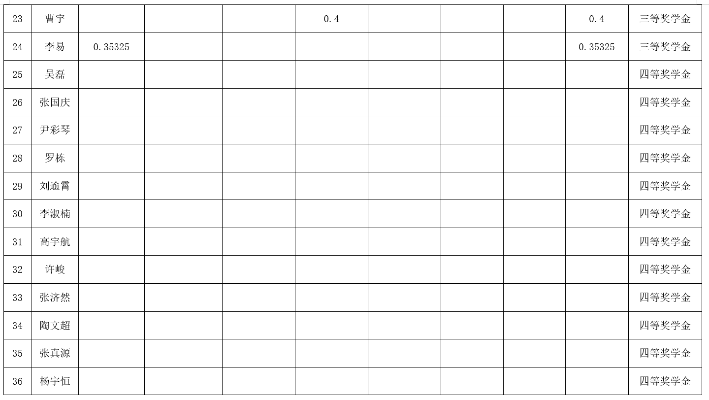 2022年度第十二次党政联席会决定,增设四等奖学金,奖学金金额为2000元。现将2020级2021-2022学年研究生学业奖学金获奖名单公示如下: