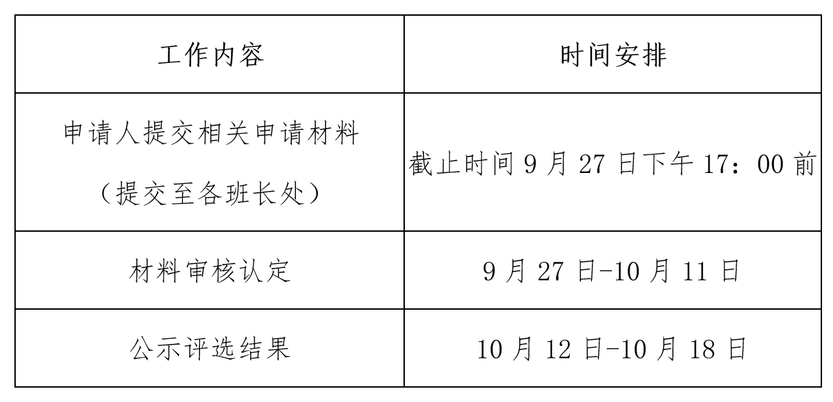 2、请务必按照时间截点提交申请材料至各班长处,过期取消申请资格。